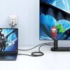 Bezpośrednie połączenie USB-C do HDMI umożliwia współpracę z kompatybilnymi laptopami, smartfonami i konsolami, co ułatwia szybkie stworzenie stanowiska pracy, prezentacyjnego lub gamingowego bez dodatkowych adapterów.