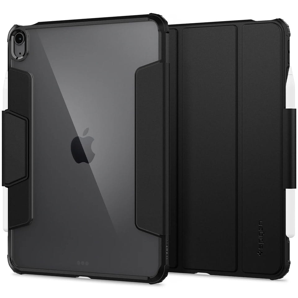 Nowoczesne etui od marki Spigen z serii Ultra Hybrid Pro, wykonane z połączenia wysokiej jakości termoplastycznego poliuretanu oraz trwałego poliwęglanu. Hybrydowy pokrowiec z klapką o transparentnych pleckach, zapewniający solidną ochronę, stylowy wygląd oraz dobry chwyt. Posiada wygodny uchwyt na rysik Apple.