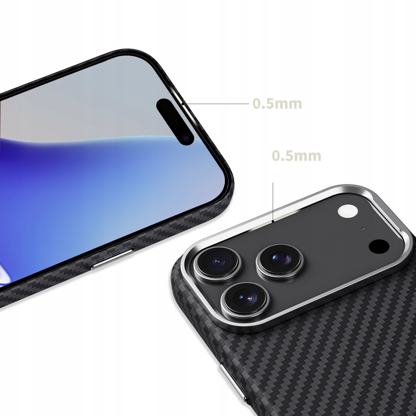 Karbonowe wykończenie etui nadaje mu nowoczesny i dynamiczny charakter, który z pewnością przyciągnie uwagę. Elegancka ramka wokół obiektywu aparatu nie tylko podkreśla estetykę, ale także zwiększa ochronę, co czyni to etui idealnym wyborem dla każdego posiadacza iPhone’a 17 Pro.