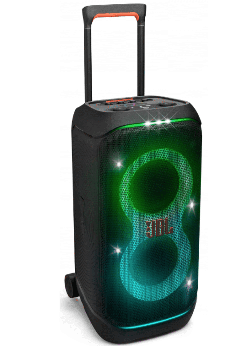 JBL PartyBox Stage 320 to przenośny głośnik, który przekształci każdą przestrzeń w imprezową strefę taneczną. Dzięki potężnemu dźwiękowi JBL Pro oraz efektom świetlnym, które reagują na rytm muzyki, zapewnia niesamowitą atmosferę.