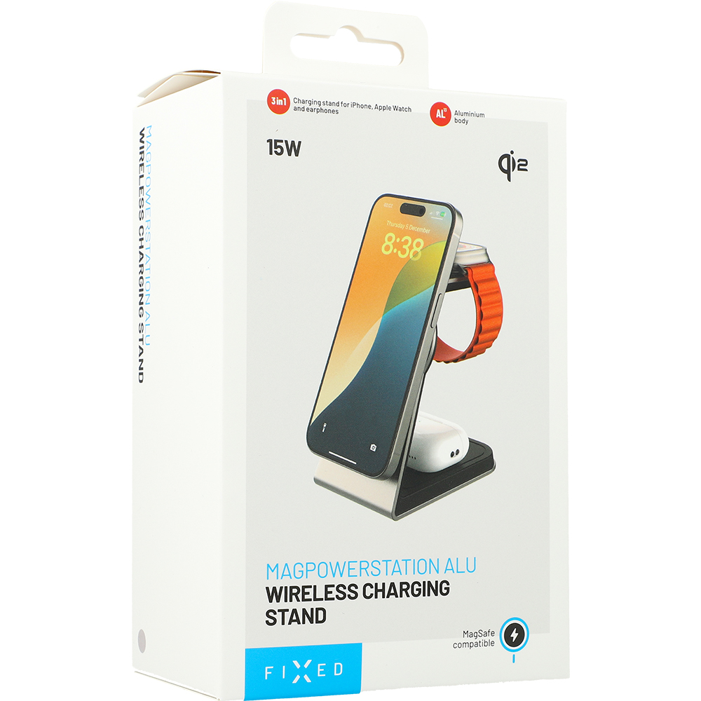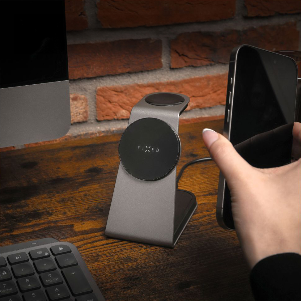 Fixed MagPowerstation trzyma iPhone’a jak najlepszy kumpel – mocno i bez nieporozumień. Powierzchnia z magnesami N52 natychmiast łapie telefon i ładuje go bezprzewodowo z mocą aż 15 W. Technologia Qi2 przyspiesza proces, nie podnosząc przy tym temperatury. Telefon można położyć jedną ręką – żadnych kabli, żadnych walk o gniazdko. Idealna dla modeli iPhone 12 i nowszych z MagSafe, także w etui MagSafe.