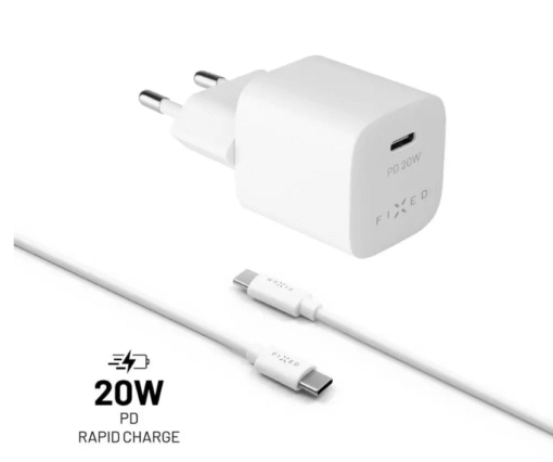Zestaw miniaturowej ładowarki sieciowej nowej generacji FIXED o mocy 20 W i kablu ze złączami USB-C zapewnia szybkie i bezpieczne uzupełnienie energii w nowoczesnym smartfonie, tablecie lub innej elektronice. Dzięki portowi USB-C z obsługą Power Delivery 3.0 może uzupełnić energię dla kompatybilnych urządzeń o moc do 20 W, znacznie skracając czas ładowania w porównaniu z klasycznymi adapterami do ładowania. Dlatego idealnie nadaje się przede wszystkim do ładowania najnowocześniejszych smartfonów i tabletów marki Apple, a także jako uzupełnienie ładowarki MagSafe. Korpus ładowarki jest naprawdę miniaturowy, łatwo mieści się nawet na trudniej dostępnych gniazdach za meblami i tym podobnych. Ładowanie jest maksymalnie bezpieczne i nie ma ryzyka przegrzania ani przepięcia. Dzięki adapterowi do ładowania FIXED nie będziesz się już martwić, że zabraknie Ci energii w urządzeniu mobilnym, niezależnie od tego, czy jesteś w domu, w biurze czy w podróży.