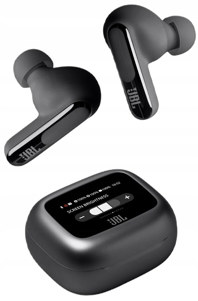 Wyświetlacz 1,45 cala umieszczony na etui pozwala też na wyświetlanie wiadomości, odbieranie połączeń przychodzących czy korektę dźwięku.Do obsługi sprzętu służy także aplikacja mobilna JBL Headphones – to prawdziwa kopalnia zaawansowanych funkcji.