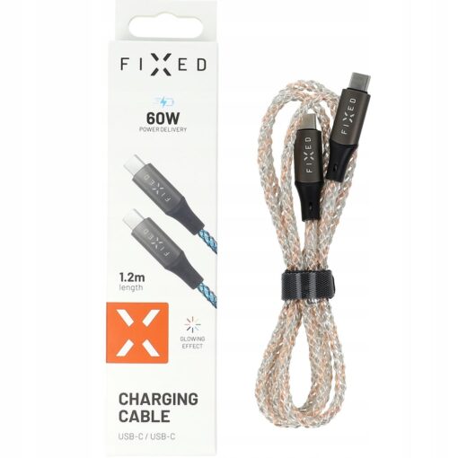 Nowy kabel FIXED z dwustronnymi złączami USB-C to doskonałe połączenie stylu i funkcjonalności. Miedziany oplot został wzbogacony światłowodami, które przebiegają przez całą długość kabla.
