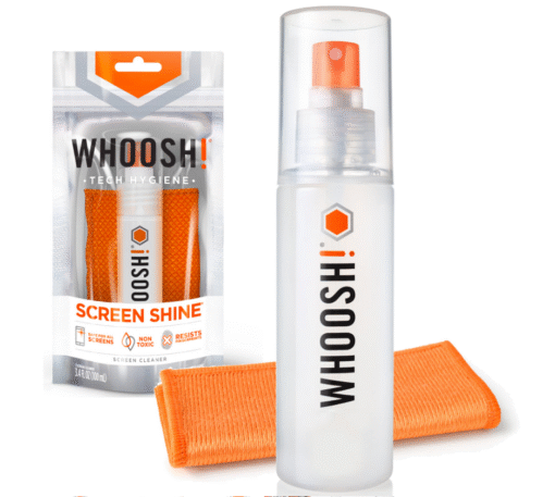 W zestawie znajdziesz również antybakteryjną ściereczkę z mikrofibry, która skutecznie usuwa brud, kurz, odciski palców oraz tłuste plamy. Dzięki swojej miękkiej strukturze, ściereczka nie rysuje ekranu, a specjalna formuła czyszczącego sprayu Whoosh! tworzy nano-cienką, niewidoczną powłokę, która zapewnia długotrwałą ochronę przed zabrudzeniami. Twój ekran będzie lśnił, jak nowy!